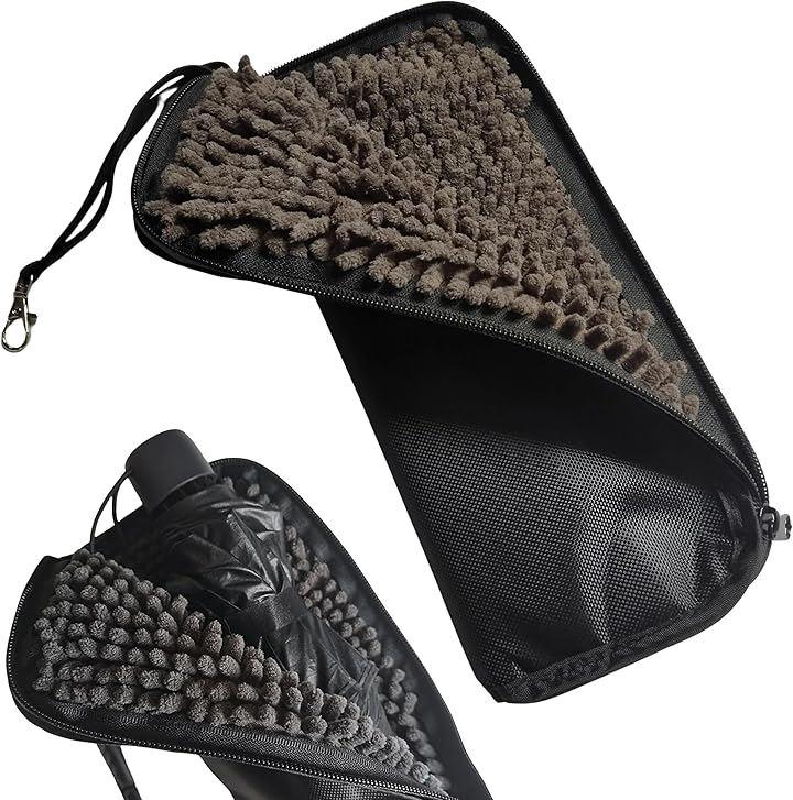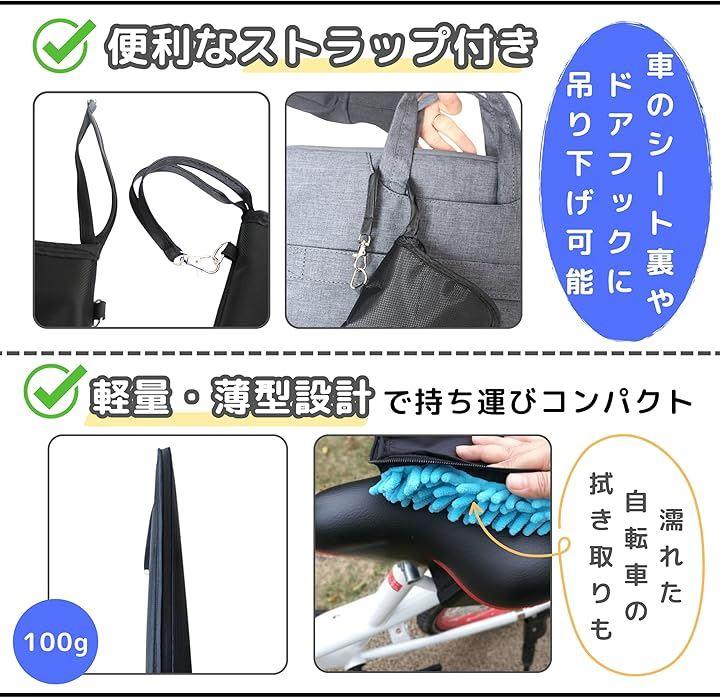 使用シーン:雨の日の折りたたみ傘を車内やバッグにサッと収納 フロアや荷物を濡らさずスマートに持ち運べる
