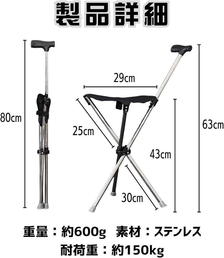 この多機能ステッキチェア兼折り畳み杖があれば、長時間の外出やイベントも快適に楽しめます。