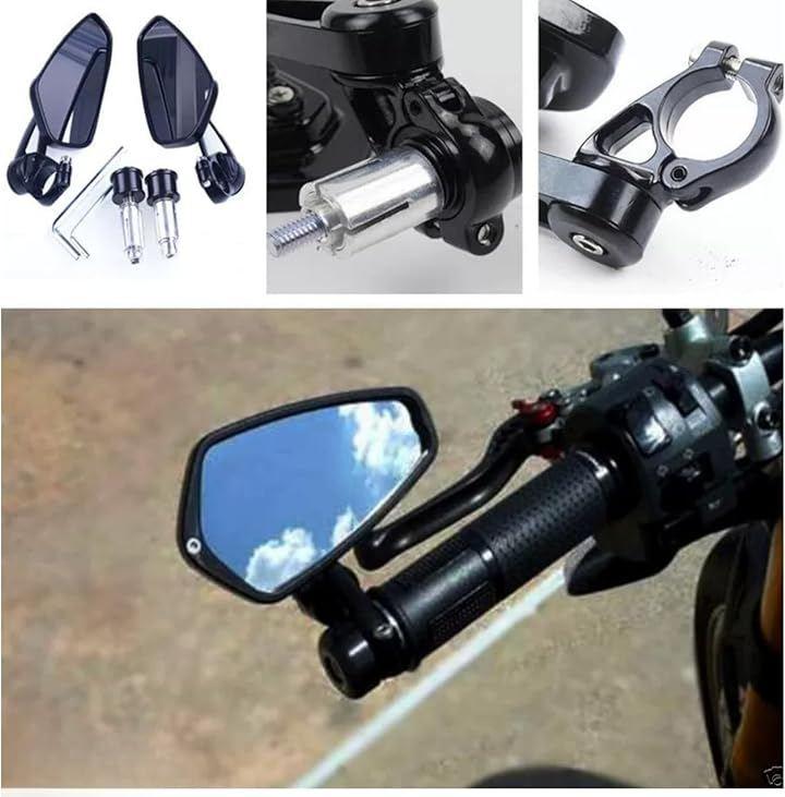 Folding wide-angle motorcycle mirrors, universal set (left and right), hexagonal, interchangeable, square, compatible with Honda, Yamaha, and Kawasaki.