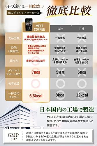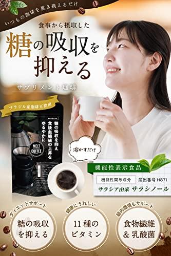 【食事を減らさないダイエット】 有効成分のサラシア由来が食事から摂取する ”糖の吸収” を抑えます。 【サプリなのに飲み忘れない】SNSで愛用者続出!いつものコーヒー習慣が、カラダに良い習慣になったら…。飲み忘れないから効果が出る!効果が出るから続く!男性 女性 どちらにも大人気 ! 【美味しいのは当たり前】ダイエットコーヒーでは難しいとされている 味と効果の両立。何十回の試作を経て、理想のコーヒーができあがりました。 【充実の美容サポート成分】1杯飲むだけで11種類のマルチビタミンにMCTオイル、チャコール(炭)、150億個の乳酸菌にレタス1/3個分の食物繊維(難消化デキストリン/イヌリン)をチャージ。考えるのが面倒だったサプリメント類から解放されます。 【健康習慣を優雅なひとときに】始めた人から変わっています!他の商品と是非、成分と美味しさを比べてみてください!