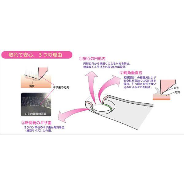 ◆ミクロン単位のギザ刃が角質単位(細胞サイズ)に作用。ギザ刃だから長寿命にもなっています。