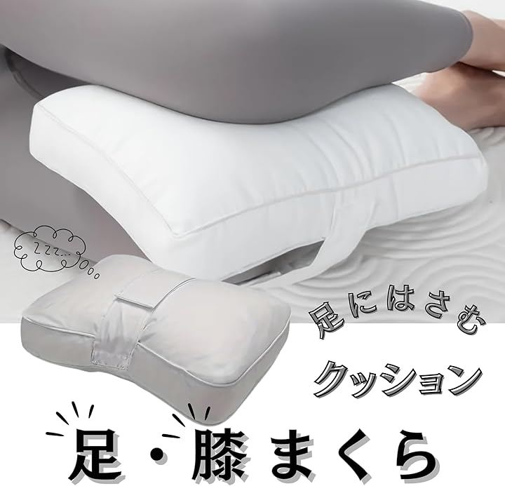 「横向き寝に安定した姿勢をサポート」横向きで眠る際に、膝の間に自然なスペースを作り出すクッションです。