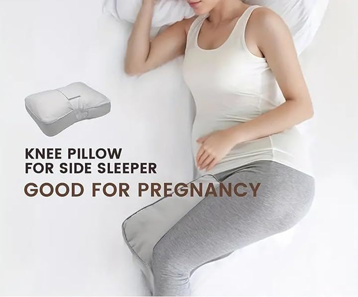 「横向き寝に安定した姿勢をサポート」横向きで眠る際に、膝の間に自然なスペースを作り出すクッションです。