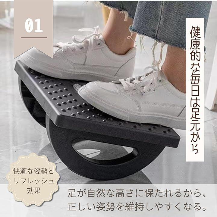 「快適な姿勢とリフレッシュ効果」180°スイング機能と足ツボローラーによるマッサージ効果で、長時間のデスクワークや学習中も快適な姿勢を保ちながら、足の疲れを軽減します。