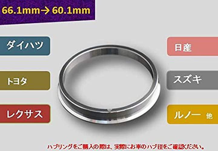 「サイズ」外径(ホイール側)66.1mm/内径(車輌側)60.1mm/高さ(約)10mm「材質」アルミ製つば付き「枚数」4枚セット
