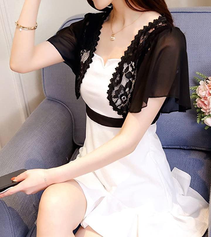 ・ワンピースやドレスとの相性が抜群のショート丈タイプのボレロ。