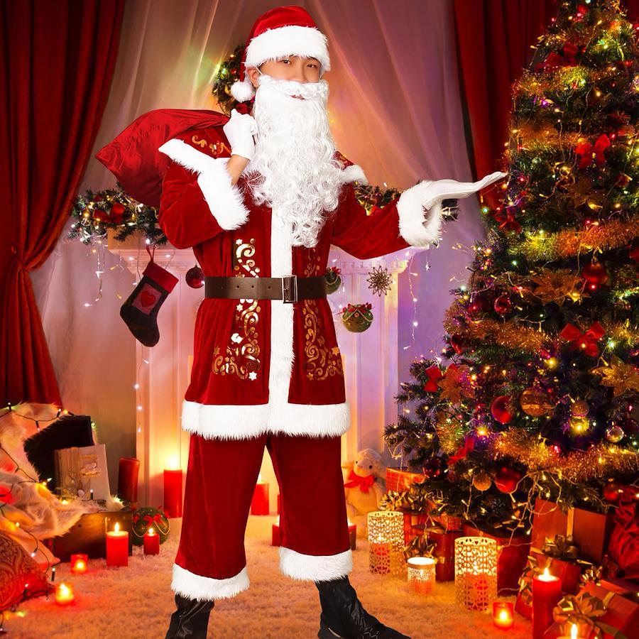 セット内容:ベルト+帽子+上着+ケープ+ズボン+靴カバー+手袋+ひげ+特製エコバッグ 9点セット★ご家族でサンタのコスチューム!定番のシンプルなサンタ衣装です☆レディース や メンズ 両方着れる男女兼用です。【 人気お得セット 】新作サンタクロースが登場!サンタコスに必要なものが全てセットになっています。お手軽でお得に可愛いサンタクロースに変身できます。サイズ M:バスト:116cm ウエスト:64cm 肩幅:50 上着:82cm ズボン:73cm 推薦身長165-170cm L:バスト:118cm ウエスト:68cm 肩幅:52 上着:84cm ズボン:75cm 推薦身長170-175cm XL:バスト:120cm ウエスト:72cm 肩幅:54 上着:86cm ズボン:77cm 推薦身長175-180cm XL:バスト:122cm ウエスト:76cm 肩幅:56 上着:88cm ズボン:79cm 推薦身長180-185cm サイズ詳細をよく確認した上でご購入することをお勧めします。【あっという間に変身】 コスプレ衣装の準備は手間がかかるもの。服装から小物まで必要なものが一式揃ったサンタクロース衣装セットなら、あっという間にサンタクロースに変身できます。【広い用途】クリスマスの仮装コスチュームや、文化祭 学園祭などのイベント衣装、忘年会、宴会、パーティーのコスプレとしてご利用いただけます。一瞬にかわいいメイドに変身できます。コスプレ用だけではなく、日常生活やイベントなどでワンピースとしても着やすいです。【ご安心購入】Formemoryで売る、この商品を買う時に注意してください!万が一商品に不具合が生じた場合、ご不明な点やご意見がございましたら、お気軽に弊社で直接にお問い合わせください、24時間内で返信します。