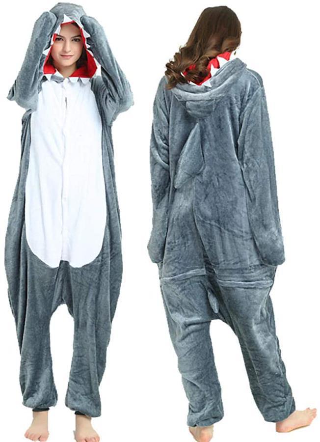 [Formemory] サメ きぐるみ パジャマ 大人用 ルームウェア 動物 コスプレ 仮装 コスチューム 男女兼用 柔らか かわいい 動物 キャラクター ハロウィン パーティー ゆったり S-M-L-XL (S)
