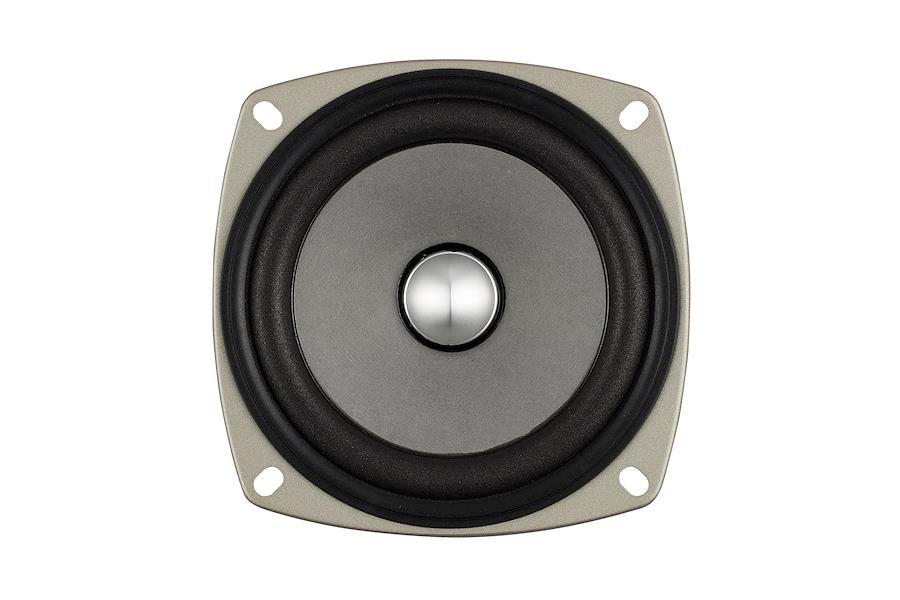 アルミ合金をリッジドーム形状に成形したセンターキャップを採用。特定周波数での強い共振を分散して弱めること