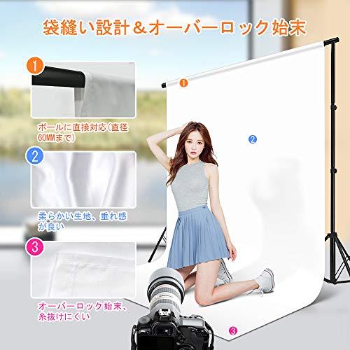 【ポリエステル材質】:FotoFoto 撮影背景布 白 (2m x 3m)は高品質なポリエステル材質を採用しており、綿製よりシワが目立たなく、低温アイロンでシワを簡単に取れます。★特に洗濯機で洗濯後、濡れたままアイロンすると効果的にシワを伸ばせるので、より素晴らしいスタジオの効果を提供できます。【両面設計】:①FotoFoto 撮影背景シートの表面はピーチスキン加工で、少し起毛感があり、写真をより上品的に撮影することができます。②撮影背景シートの裏面は滑らかで、別の撮影ニーズに満足して両用できるので、非常に使用便利です。【洗濯・アイロン可能】:FotoFoto 撮影用バックペーパーは折り畳みで出荷しておるので、商品到着時は折りシワがつく可能性がございます。その場合、使用前にアイロンをかけると、シワが取れます。また汚れる場合、クロマキー布を手でも洗濯機でも洗濯して干すことができます。★ご注意:①洗濯する際は、色移りする場合がございますので、単独で洗濯してください。②お手元のアイロン使用方法を先に確認してから、アイロンかけをしてください。(普通のアイロンでは、高温~中温(ポリエステル)に控えること。)③アイロンする際は、高温でも大丈夫ですが、長時間使用すると縮んだり、布が傷む場合がございますので、お気を付けください。【パイプ差し込み設計】:FotoFoto 撮影用バックグラウンドは袋縫い加工を採用しており、直接に背景スタンドのポールを背景布に差し込むだけで、設置できるので大変使用便利です。★ポールは直径60mmまでに対応できます。【繋ぎ目のない】:FotoFoto 撮影用背景布(白)は一体成型で継ぎ目がなく、製品撮影 / ポートレート写真撮影 / プロの写真スタジオ撮影に適するだけではなく、結婚式 / ベビーシャワー / パーティーの装飾 / 誕生日 / youtube 動画の撮影に使用できます。パッケージ内容:FotoFoto 撮影背景布 (2m x 3m)*1 ★もし製品に関して、何かご不明な所がございましたら、何時でもお気軽に弊店にお問い合わせください。?もっと見る