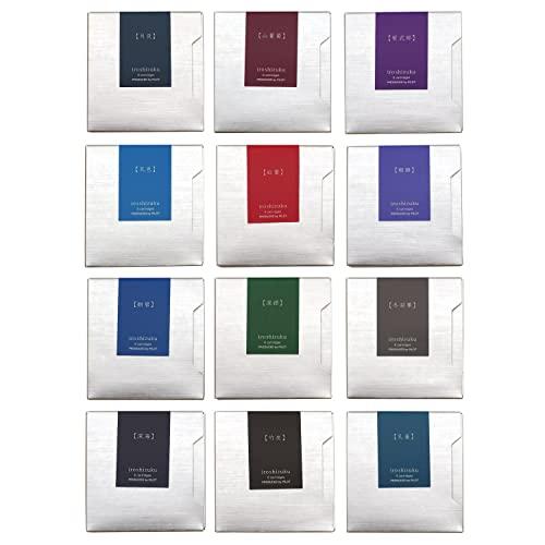 携帯に便利でインキの補充が手軽にできる「色彩雫」のカートリッジタイプ。。紙製のパッケージはボトルインキ「色彩雫」の世界観を踏襲し、シンプルで上質なデザイン。また、カートリッジ本体にも色名が印刷されているので、インキ色をひと目で識別することができます。。内容量:6本入り:0.9cc/1本。。サイズ:縦=73mm 横=70mm 厚さ=10mm。商品色傾向:赤。。