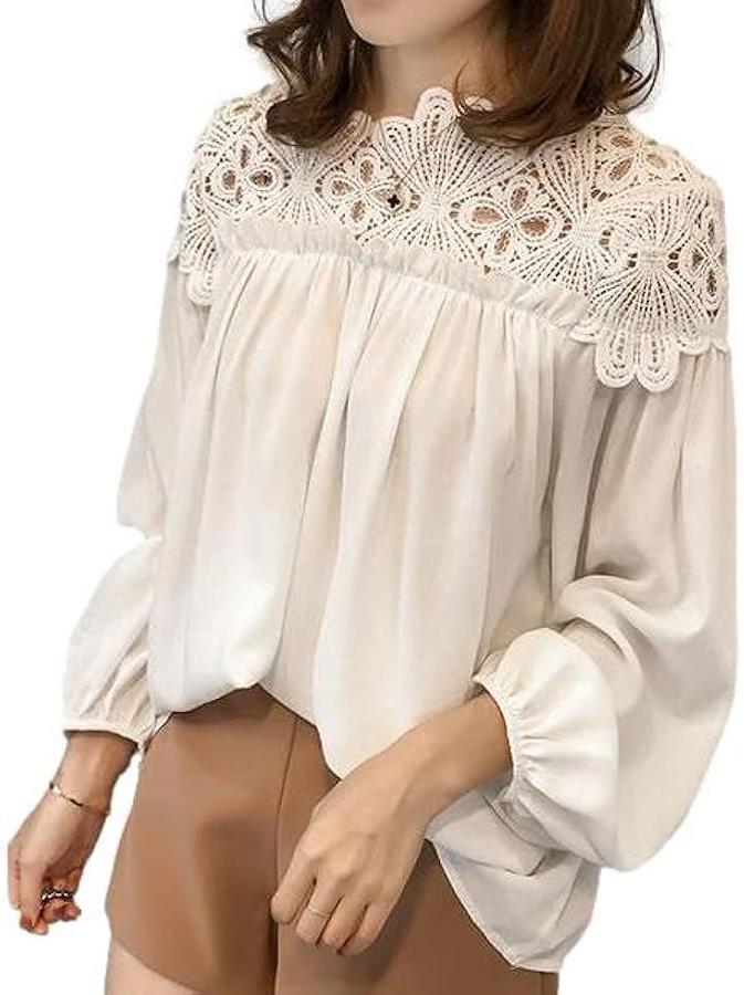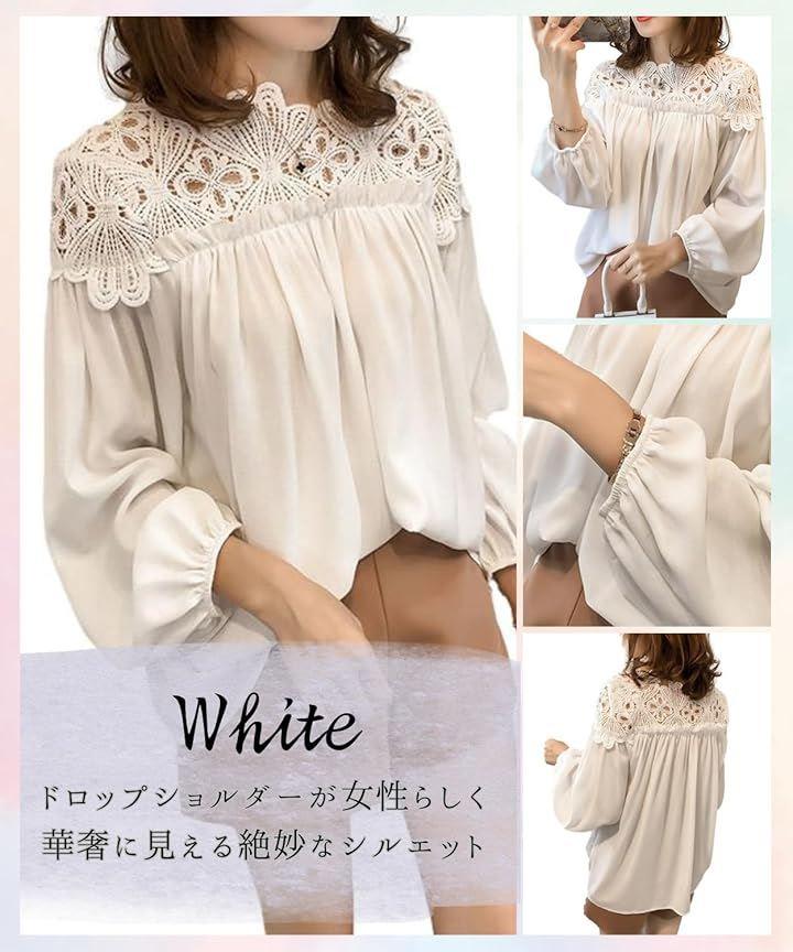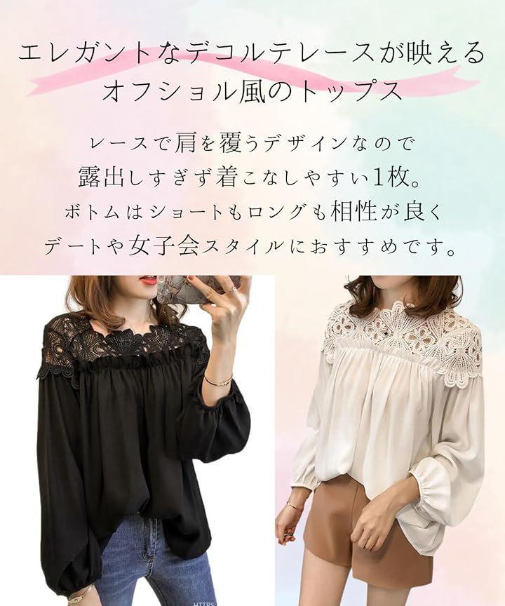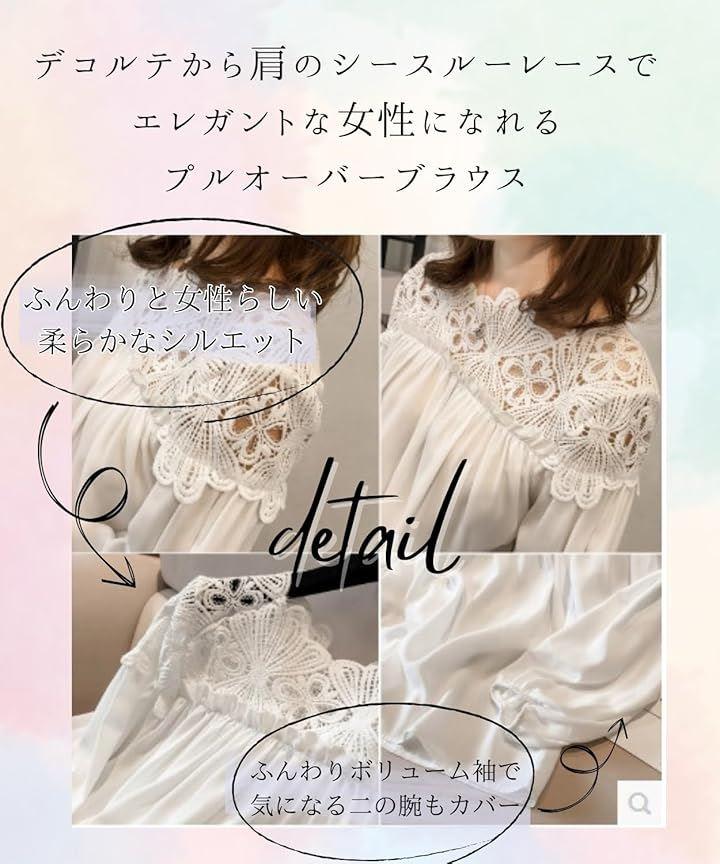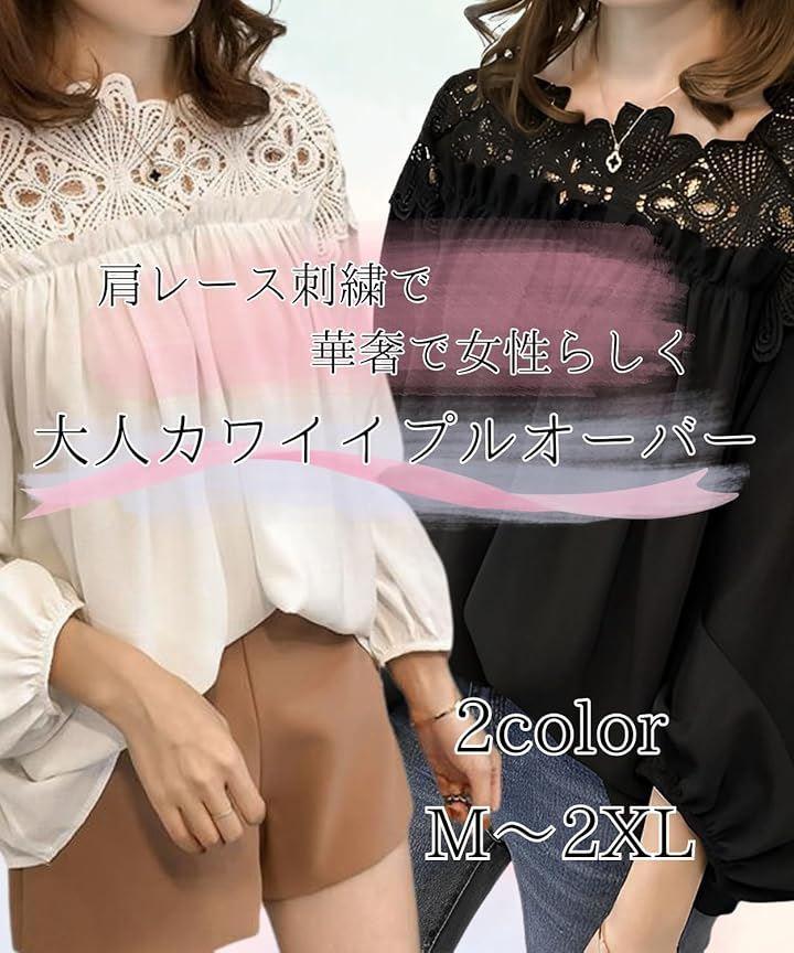ふんわり大人な肩周りふんわり優しい印象の大人カワイイプルオーバー デコルテから肩のシースルーレースがエレガントな女性を演出してくれます 着心地抜群ぽわん袖とゆったりシルエットで着になる気になる体型も可愛くカバー