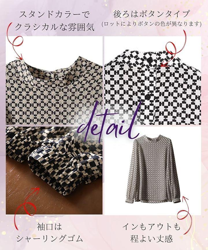 女性らしいフェミニンなデザインのおしゃれな幾何学柄の大人ブラウスです。