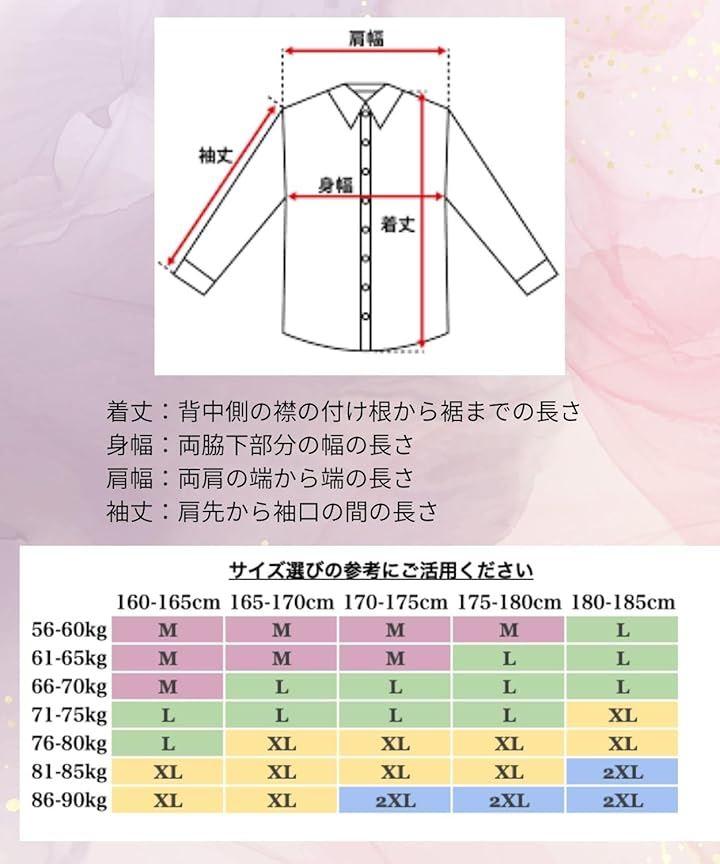 「M」肩幅36/袖丈54/バスト96/丈59 「L」肩幅37/袖丈54/バスト100/丈59「XL」肩幅38/袖丈54/バスト102/丈59「2XL」肩幅39/袖丈54/バスト104/丈59「3XL」肩幅40/袖丈54/バスト106/丈59
