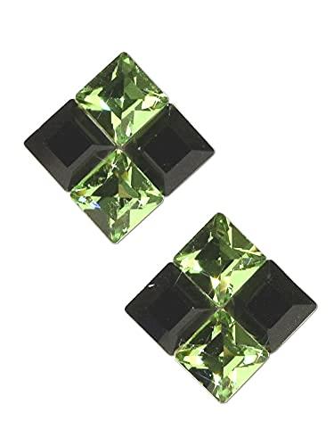 [Four-Leaf Clover] 18k Gold Stud Earrings with Swarovski Crystals, Checkered Pattern, for Women: Ma