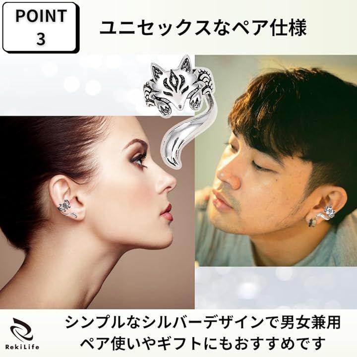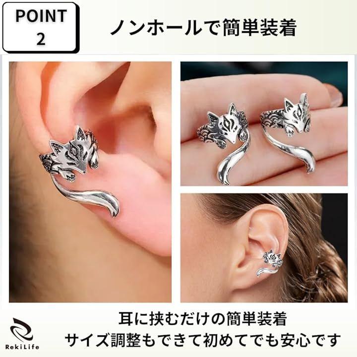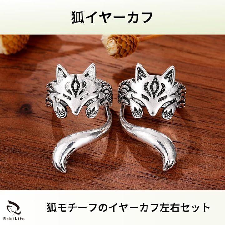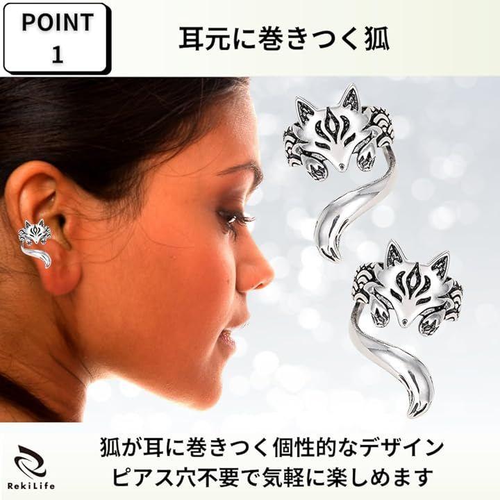 「耳元に巻きつく狐」イヤーカフは可愛らしい狐が耳に巻きつくようなユニークなデザイン。