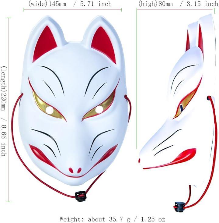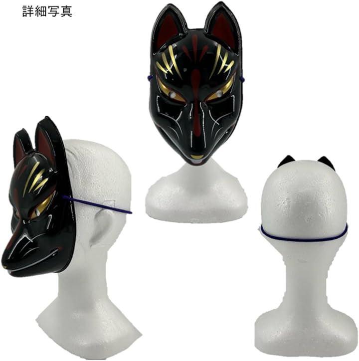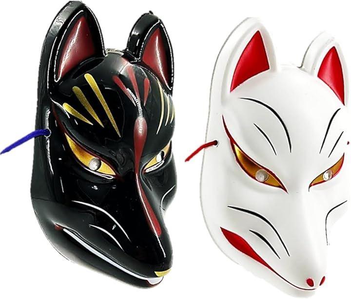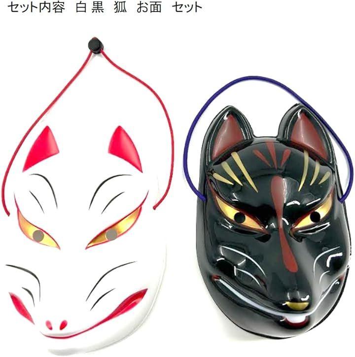 「狐面 サイズ」横14.5 cmx縦22cm 白 黒 セット