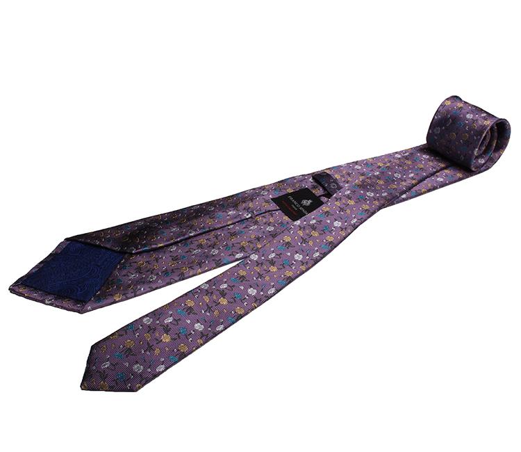 Franco Spada(フランコスパダ)フランコスパダはメイドインジャパンにこだわった、洗練された紳士達に提案する最新のクラッシクスタイルで 仕上げた上質なネクタイ。クラシックでありながら、モダンというタイムレスなテーマでNew Classicを提案しま す。ソリッド、ストライプ、ドット、小紋などのデザインをベースにオリジナルの色立てで織り上げることで、 上質な光沢と質感に仕上げています。デザイン、カラーはもちろん糸の段階からオリジナルにこだわりイタリア ネクタイと同じ光沢のある甘撚りの色立てができる国内で唯一の京都の老舗機屋で最大12色かけて重厚に織り上 げられた生地は他に類を見ないほどの上品な光沢と質感です。また、芯地も生地に合うようオリジナルのウール 芯を開発し、縫製も国内でトップレベルの工場で全てハンドメイドで縫い上げているので、機械縫いにはない、 締め心地の良さをより追求したメイドインジャパンを感じられる贅沢なネクタイとなっています。