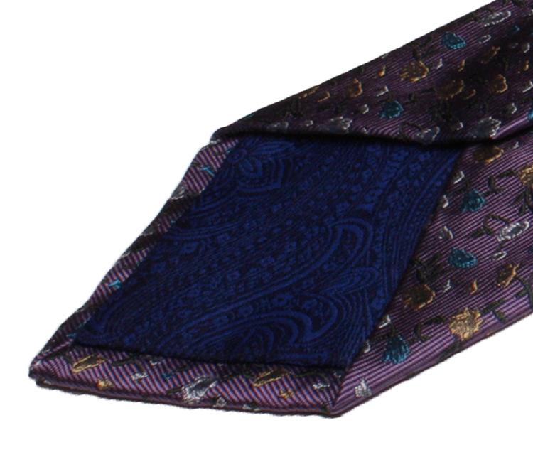 ハンドメイド日本製ネクタイ職人のハンドメイド(手縫い)で縫製されたこのネクタイは機械縫いとは違い、生地のテンションを見ながら縫製するのでふっくらとした仕上がりで、裏側に備わるループ状のたるみ糸はネクタイを結ぶと糸が動いて力を分散させステッチが切れたり、生地が歪んだりするのを防ぎます。手縫いの高級ネクタイによく見られる仕様です。