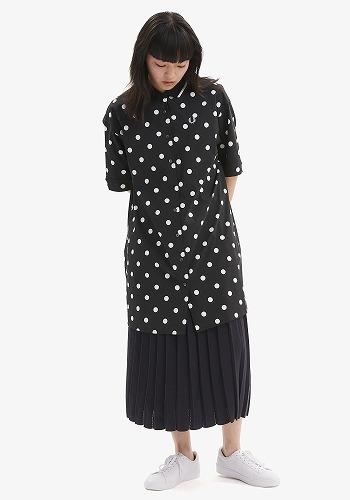 (フレッドペリー) FRED PERRY ドットシャツドレス ワンピース 通勤通学 ビジネス ストリート WOMEN DOT REVERE SHIRT DRESS F8609 07 BLACK