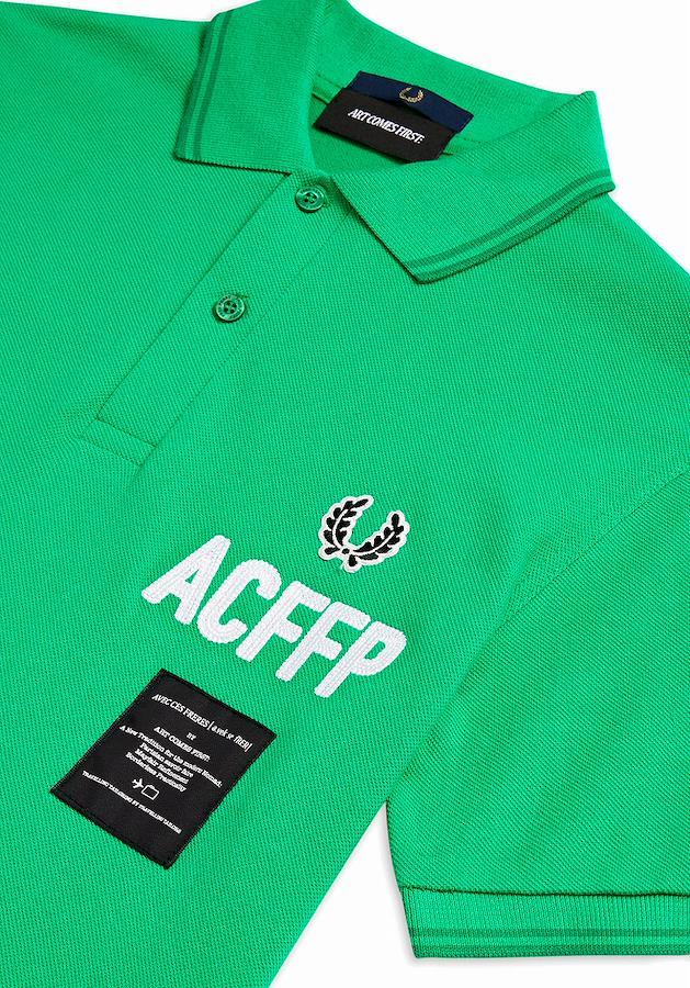 【DETAIL】・Art Comes Firstがオリジナルツインティップフレッドペリーシャツをベースに背中のボールドプリントと胸にパッチをデザイン。