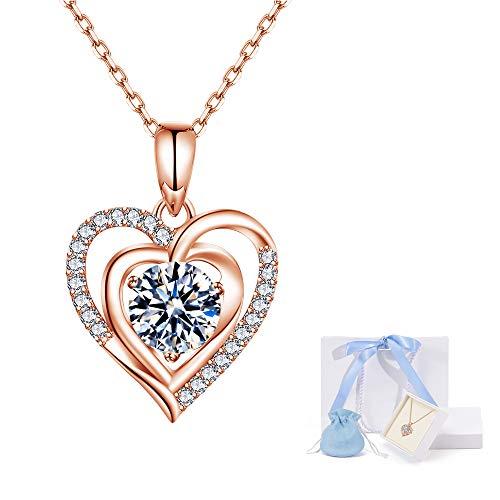 [Free bird] Women's Heart Necklace with 5A Cubic Zirconia, Rose Gold Heart Pendant, 925 Sterling Silver, a Popular Gift for Birthdays and Mother's Day