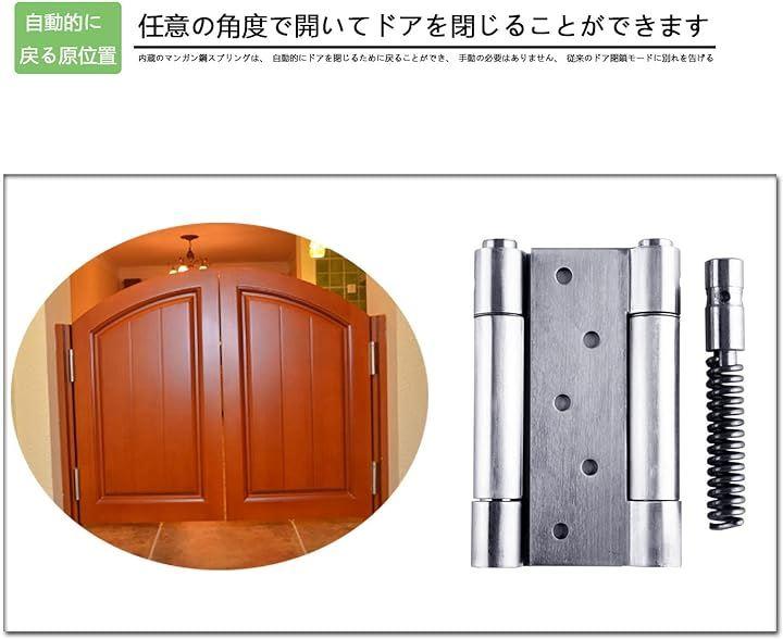 スプリング蝶番は、扉や門などの開閉機構に非常に便利で、両開(双方向に開く)の機能を提供します。