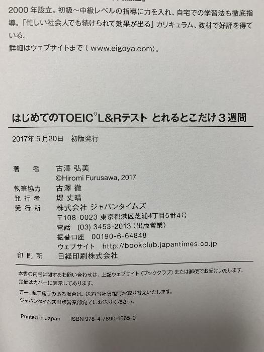 (Free MP3 audio download included) First TOEIC(R) L&R Test: 3 Weeks of Studying Only What You Can Pass Japan Times Hiromi Furusawa