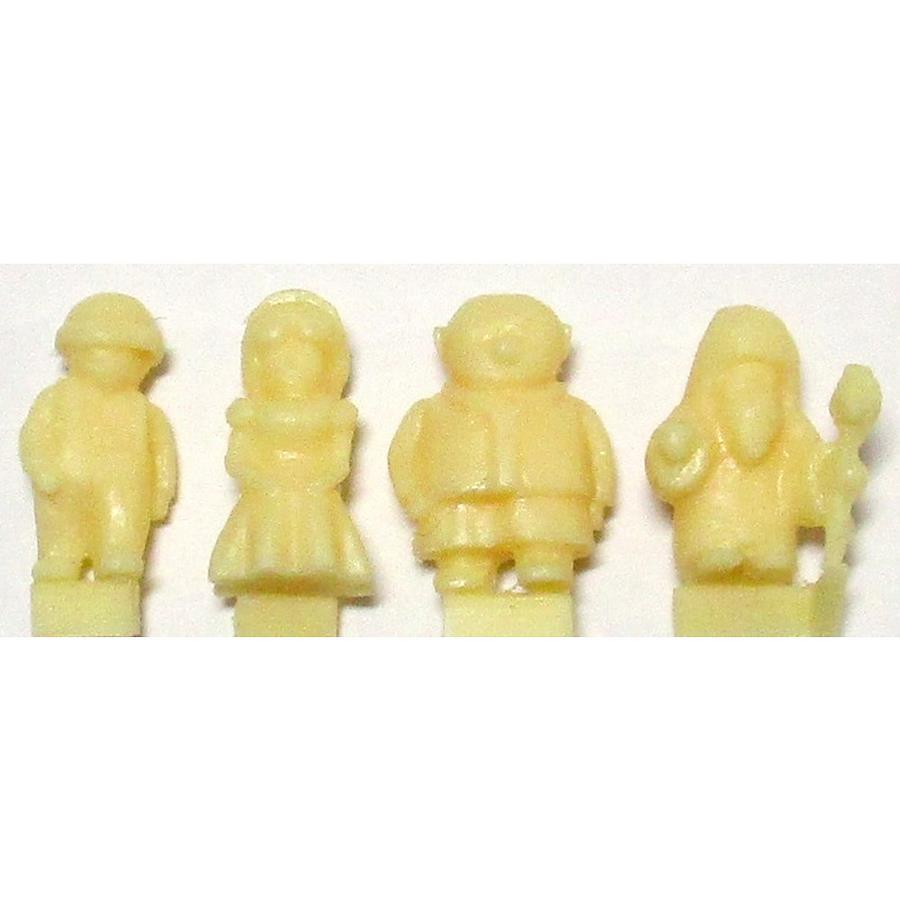 品番: 452内容物(パーツ):つなぎの男・ドレスの女・商人・老人風の人形4体セット大きさ高さは約14mm材質: カラーレジン