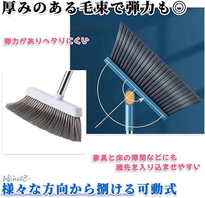 「機能性抜群」箒の穂の部分は、厚みのある毛束で弾力がありヘタりにくく、可動式なので様々な方向から履くことができます。
