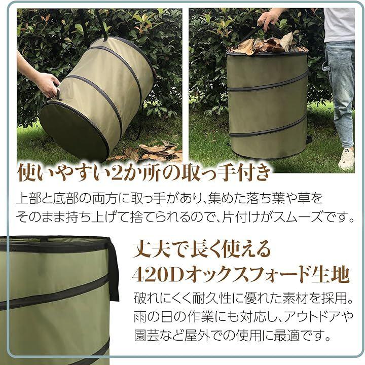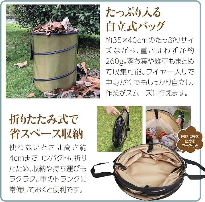 草や落ち葉の収集に便利な、大容量の折りたたみ式ガーデンバッグです。