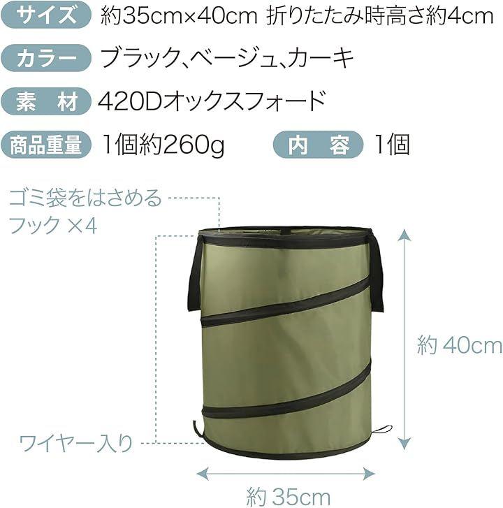 ホップアップ式で簡単に広げられ、ワイヤー入りなので中身が空でも自立します。