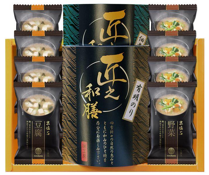 マルコメのフリーズドライ味噌汁と、有明のりのセットです。シーンを問わず贈答におすすめです。