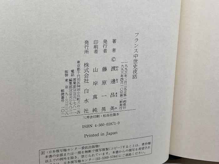 商品名:フランス中世史夜話 白水社 渡邊 昌美