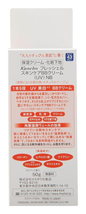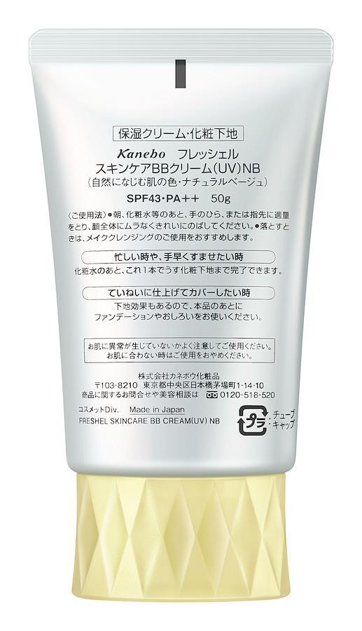 商品の形状 クリーム色 ナチュラルベージュ肌タイプ 全肌仕上げタイプ ナチュラルパッケージ情報 チューブブランド Freshel(フレッシェル)カバー力 フル商品特長 毛穴ケア肌の色調 ナチュラルベージュ日焼け止め 43 SPF
