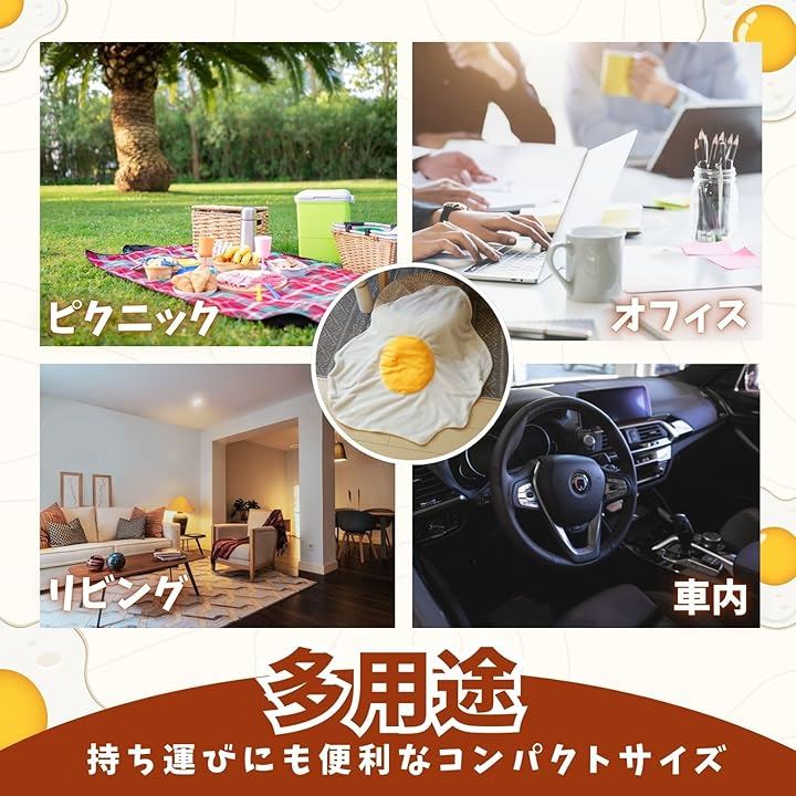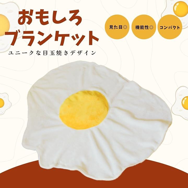 「おもしろ ブランケット 膝掛け」 ひざ掛けとしても大活躍するユニークな目玉焼きデザインのブランケット。