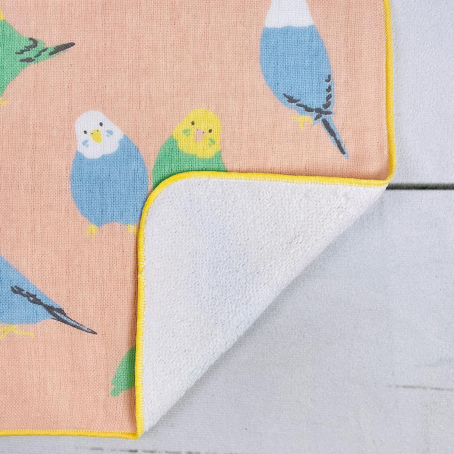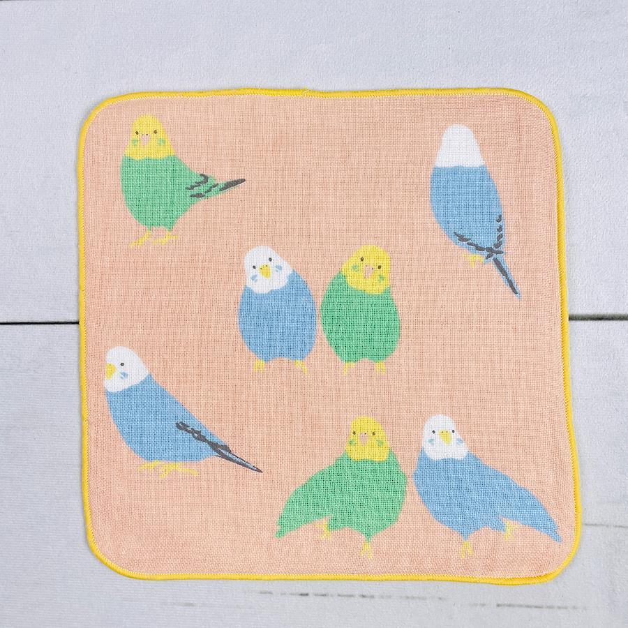 インコのイラストがプリントされたとってもかわいいガーゼタオルです。
