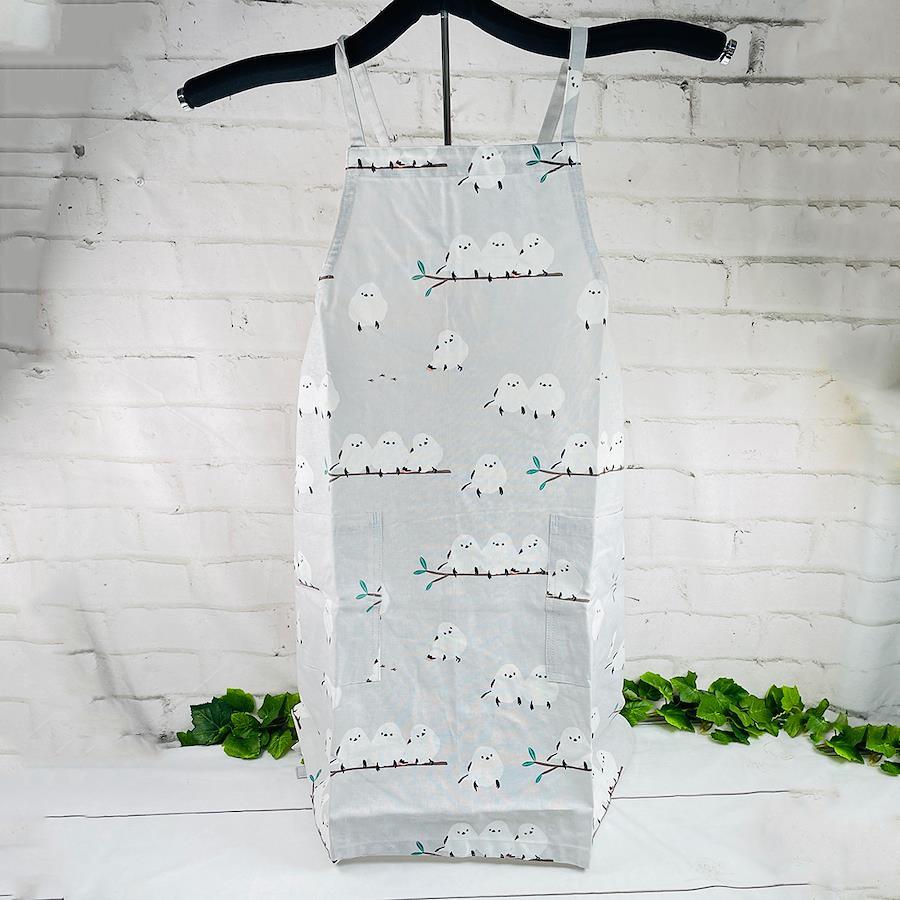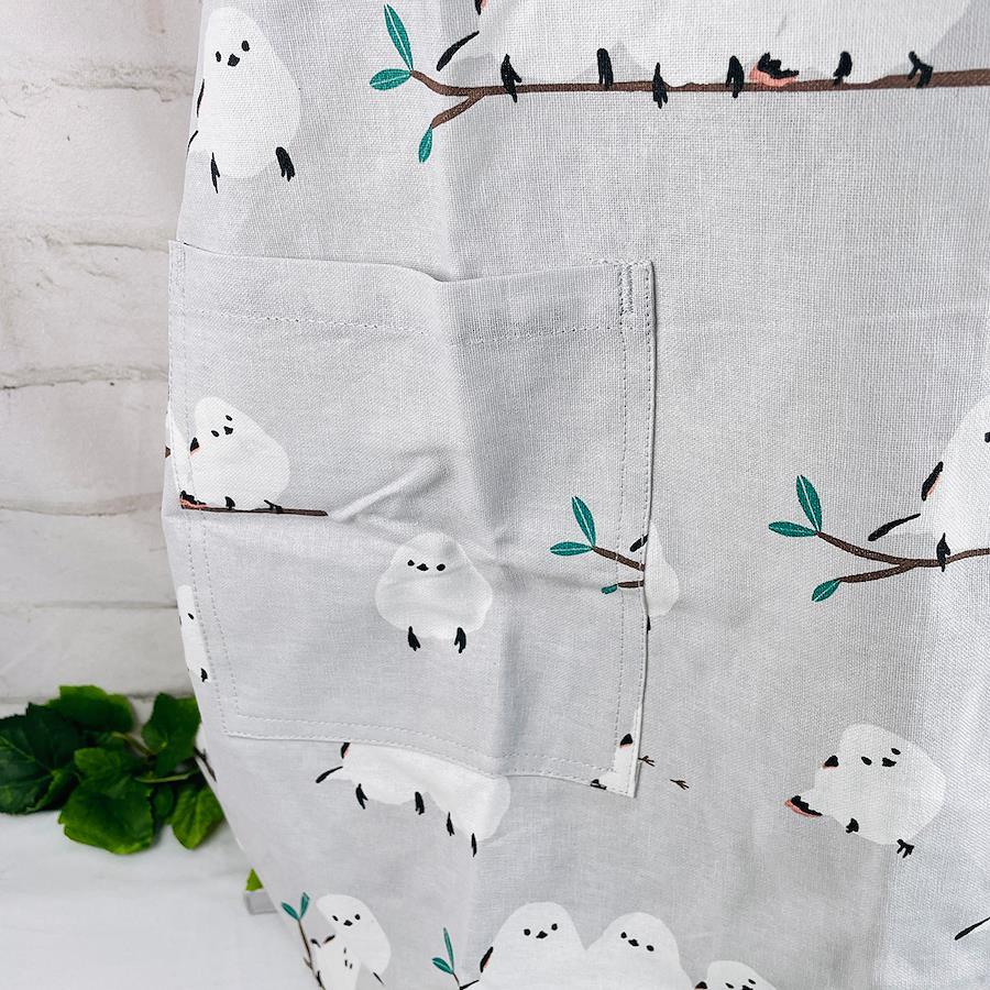 北海道に住むもふもふの鳥「シマエナガ」が描かれたとってもかわいいエプロンです。大きなポケットもついていて使い勝手も良い。インド綿を使用していて吸水性にも優れいています。