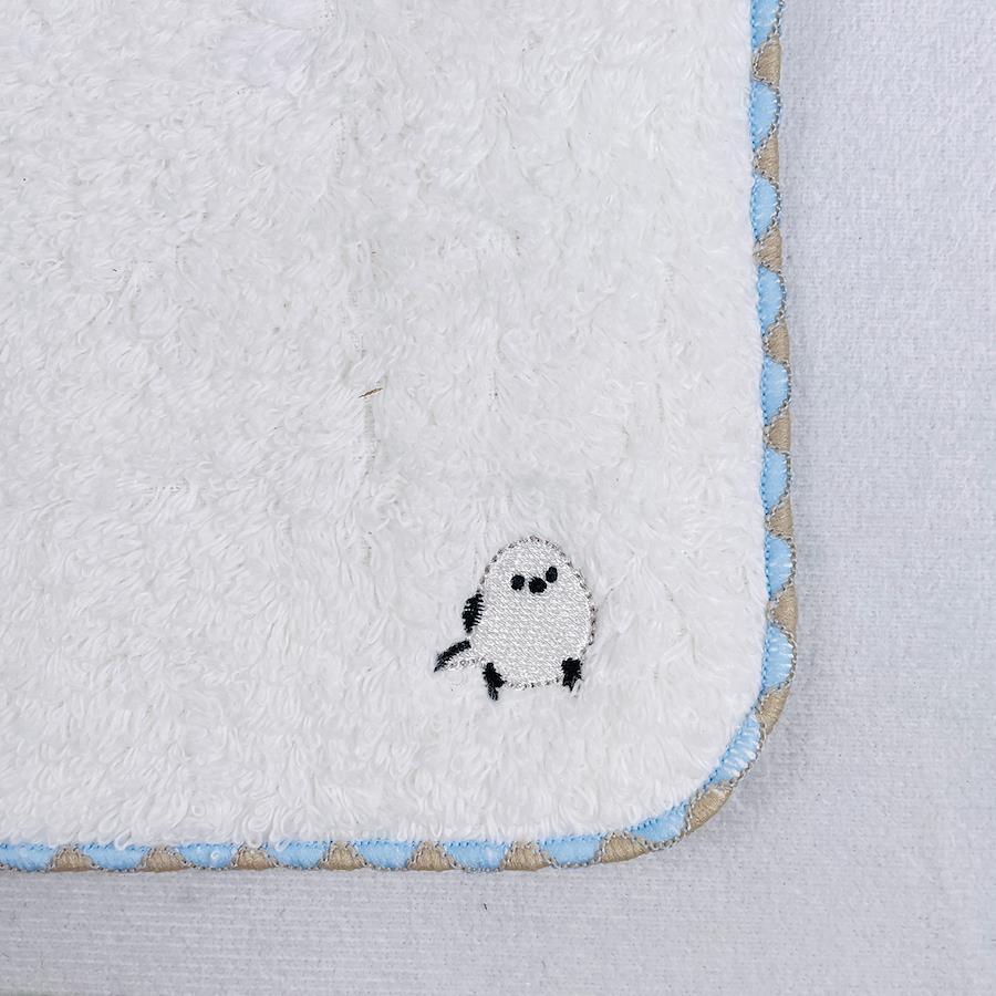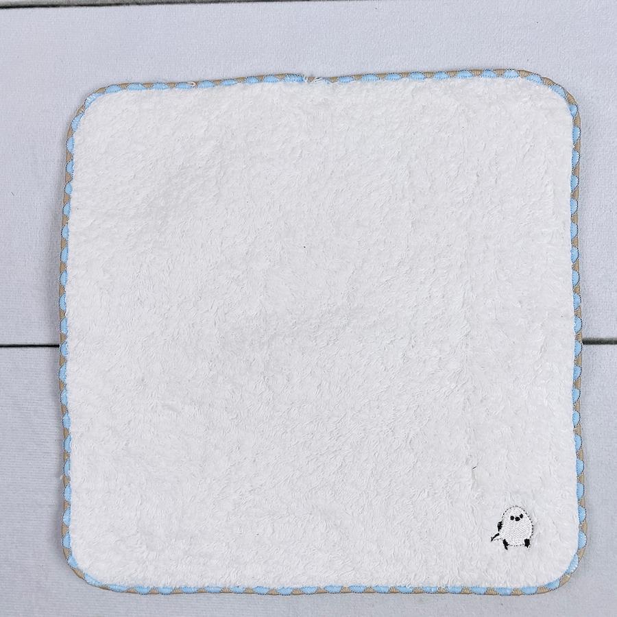 北海道に住むもふもふの鳥「シマエナガ」がワンポイント刺繍されたかわいくてふわふわのハンカチタオルです。