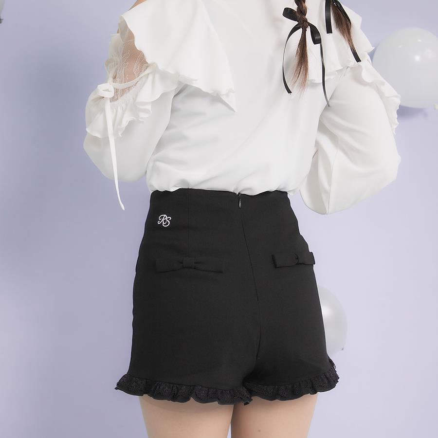 シンプルながら裾フリルがかわいい定番ショートパンツ。