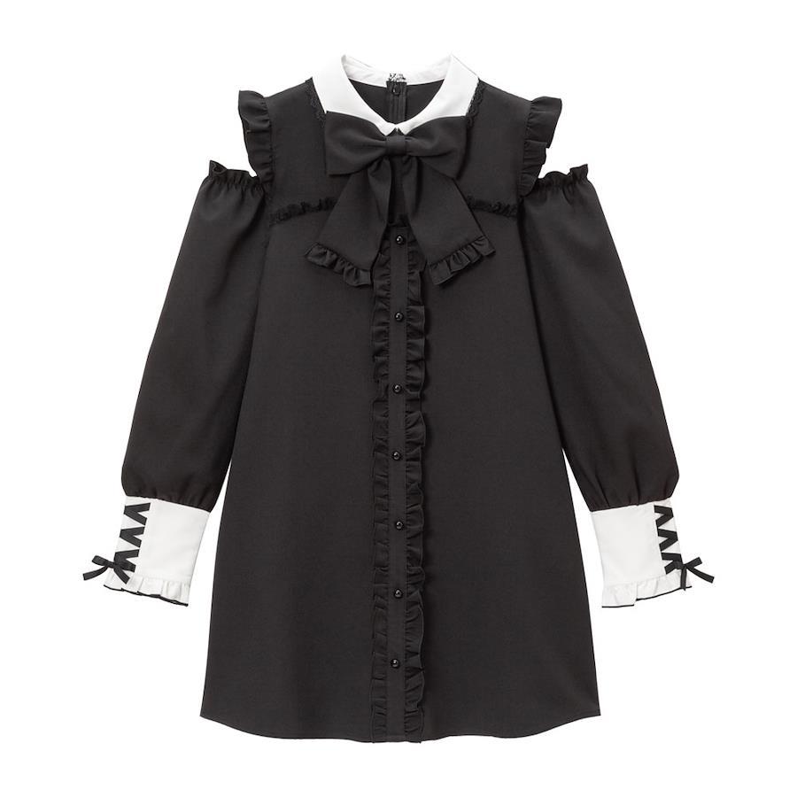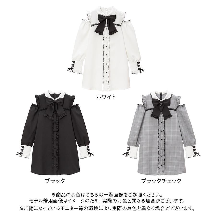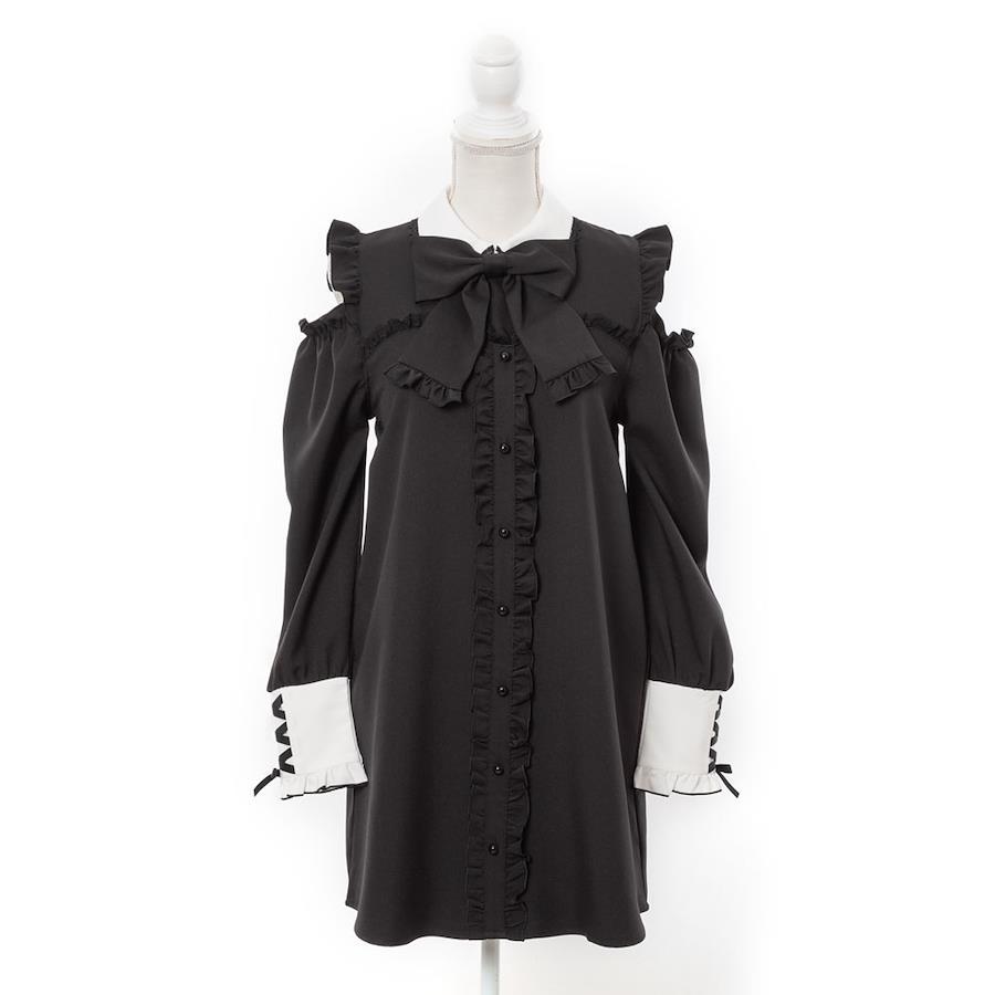 フリルたっぷりのかわいすぎる♪オフショルワンピースが登場【デザイン】フリルたっぷりの甘めのオフショルシャツワンピースです。後ろのヨークデザインにファスナーがあるのでそちらで着脱できます。襟元リボンにもフリルがついています。こちらは安全ピンで取り外し可能です。袖口カフス部分にはレースアップデザインがポイントになっていて、こちらは縫い付け仕様になっています。切り替え部分にはレースがポイントでついています。デザインポイントたっぷりのアイテムになっています♪【素材】しっかりとした素材になっています。ホワイトはインナーとインパンの着用をオススメ致します。【コーディネート】ハイソックスや厚底ローファーとの相性ぴったり♪かわいいリボンクリップと合わせて甘いシャツワンピコーデにしてみてください♪《透け感》カラーによってあり 《生地の厚さ》普通 《裏地》なし 《伸縮性》なし《生産国》中国