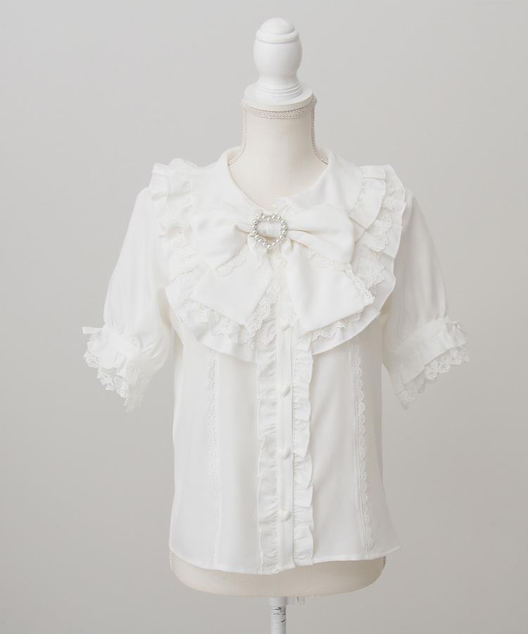 袖からヨークまでレースフリルたっぷりのこてこてでかわいすぎるブラウスです。