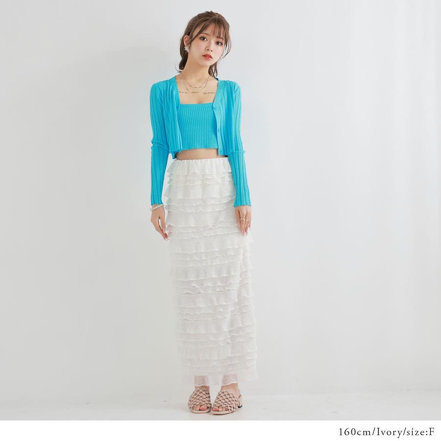 ◆Designティアードになったフリルが特徴的で、スカート全体に繊細な動きと華やかさを与えます。立体感のあるシルエットが、着る人の美しさを引き立てます。スカート部分が柔らかなカットソー素材で作られており、動きやすく快適な着心地◎カジュアルな印象を与えつつも、フリルティアードデザインがフェミニンな雰囲気を演出します。トップスを選ぶことで、カジュアルな印象からきれいめなスタイリングまで、様々なコーディネートが楽しめます。