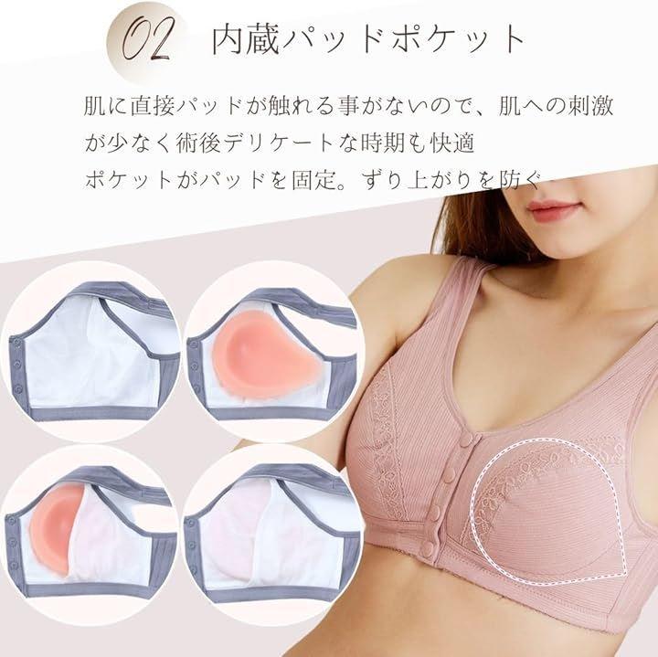 パッド入れ付き:内側ポケットで乳がんパッドをしっかり固定し、ズレやずり上がりを防止。