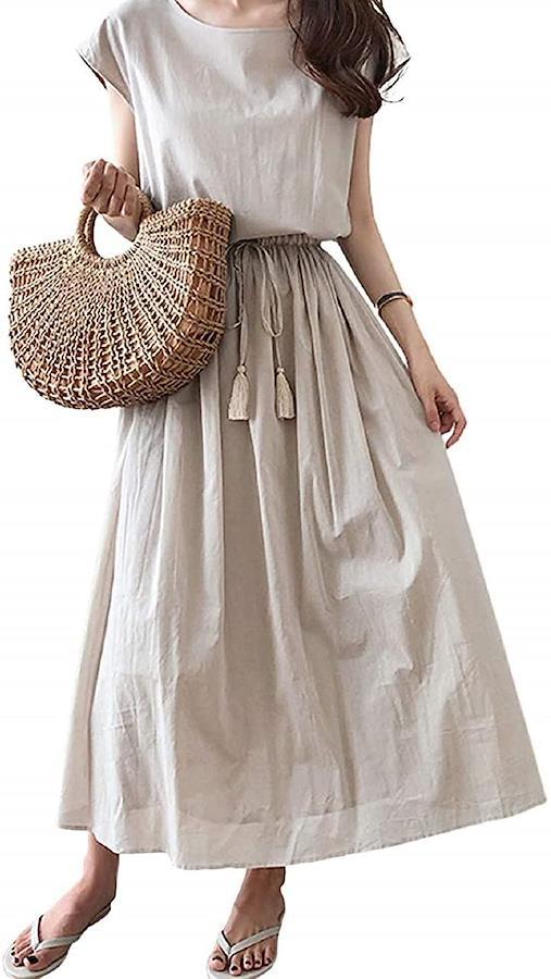 ------------------------------------- 表地:レーヨン88% 麻12% 裏地:ポリエステル 100% 中国製 「M」:着丈約127cm 身幅約48cm ウエスト幅30cm ゆき丈28cm 「L」:着丈約129cm 身幅50cm ウエスト幅33cm ゆき丈29cm 「XL」:着丈約133cm 身幅53cm ウエスト幅35cm ゆき丈30cm ------------------------------------- 「生地の厚み」:薄手 「伸縮性」: 無 「透け感」: やや有り 「光沢感」: 無 水洗い:不可