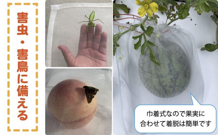 v「害虫から果実を守る」果実や野菜はそのままでは無防備なのでガードが必要な場合がありますv「モモ カキ ブドウなどの」果実に近寄る害虫を予防します