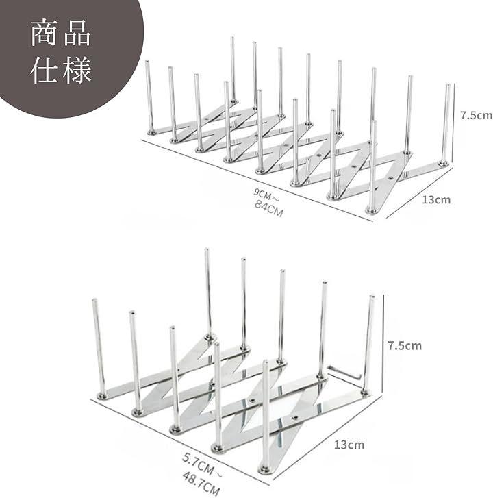 「商品内容」スタンダード 幅13cm 高さ 7.5cm 長さ(最短~最長) 5.7cm ~ 48.7cm 重量172g ロング 幅 13cm 高さ 7.5cm 長さ(最短~最長) 9cm ~ 84cm 重量289g 素材 ステンレス