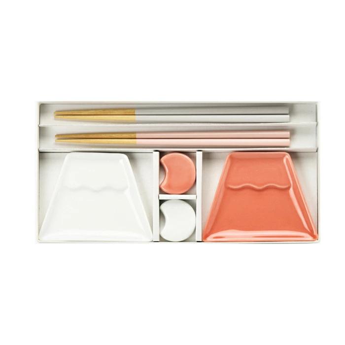 小皿(8.8×11.2×高さ1.5cm)、箸置(4.2×3.5×高さ1cm)、箸×各2