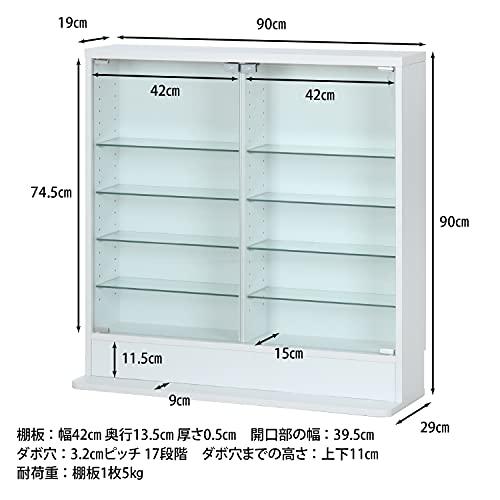 フィギュアやプラモデルの展示・収納だけでなく、CDやコミックの収納にも使える実力派収納。棚板は高さを自由にすることができる可動式なので、お気に入りのコレクションを好きな位置に飾ることができます。複数台並べると重厚感もまして博物館のようになります。 フィギュアやプラモデルの展示・収納だけでなく、CDやコミックの収納にも使える実力派収納。ガラス張りで中身がホコリをかぶりにくくて、また中身が見えやすくて便利です。棚板の高さは3.2cm感覚で調整することが可能です。 本体サイズ:幅90×奥行29×高さ90cm、棚板:幅42×奥行13.5×厚さ0.5cm ダボ穴ピッチ:3.2cm(17段階) 本体重量:27kg、耐荷重(棚板1枚):目安5kg 素材・材質:プリント紙化粧繊維板、強化ガラス 原産国:中国 ※お客様組立商品です。 ※2人以上で組み立てをおこなってください。