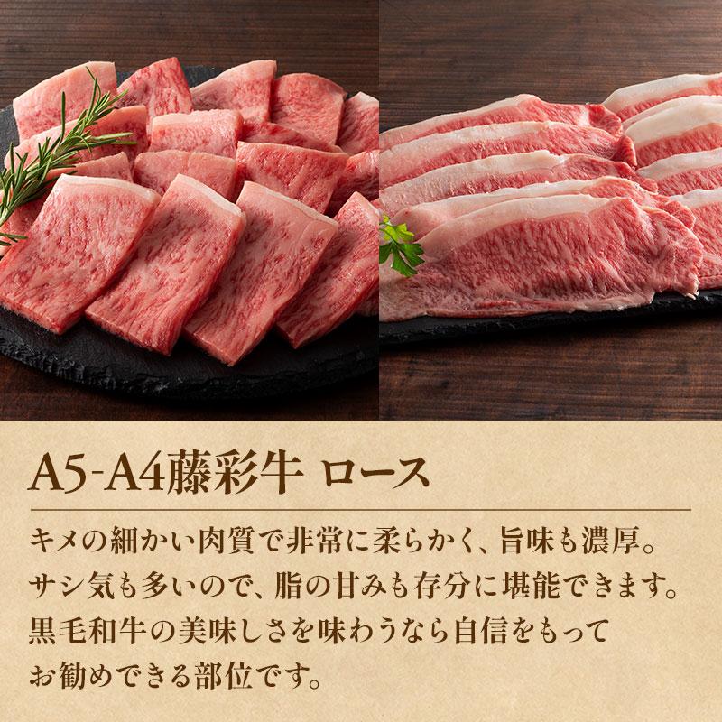 【二の段】A5 A4藤彩牛ロース(すき焼き/焼肉用)…きめ細かく柔らか、脂の甘みが広がる人気部位。